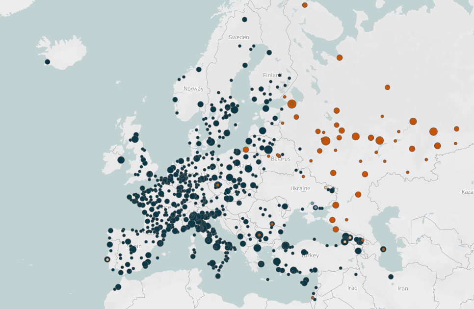 Outside of Russia, the opposite is true, with the overwhelming majority of demonstrations — 98% — proceeding without state intervention. Exceptions included demonstrations involving acts of graffiti outside Russian embassies and on monuments, as well as some clashes with police, which led to a small number of arrests in several countries. In Kazakhstan, demonstrators were arrested for carrying out an ‘unsanctioned’ demonstration outside the Russian consulate in Almaty. Notably, the intervention by Kazakh authorities comes less than two months after they sought Russian intervention to suppress a nationwide anti-government demonstration movement.