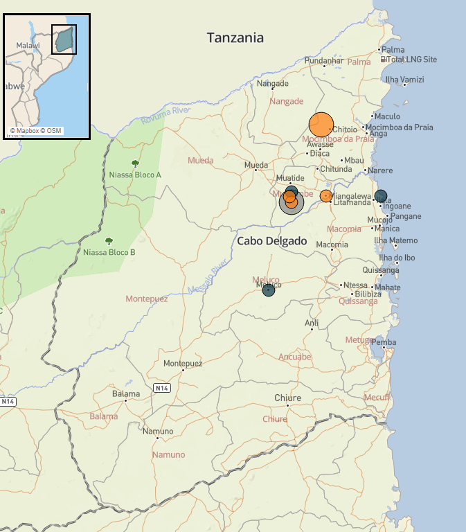 - Reported fatalities were highest in Mocímboa da Praia district, where insurgents clashed with Local Forces and Rwandan forces
