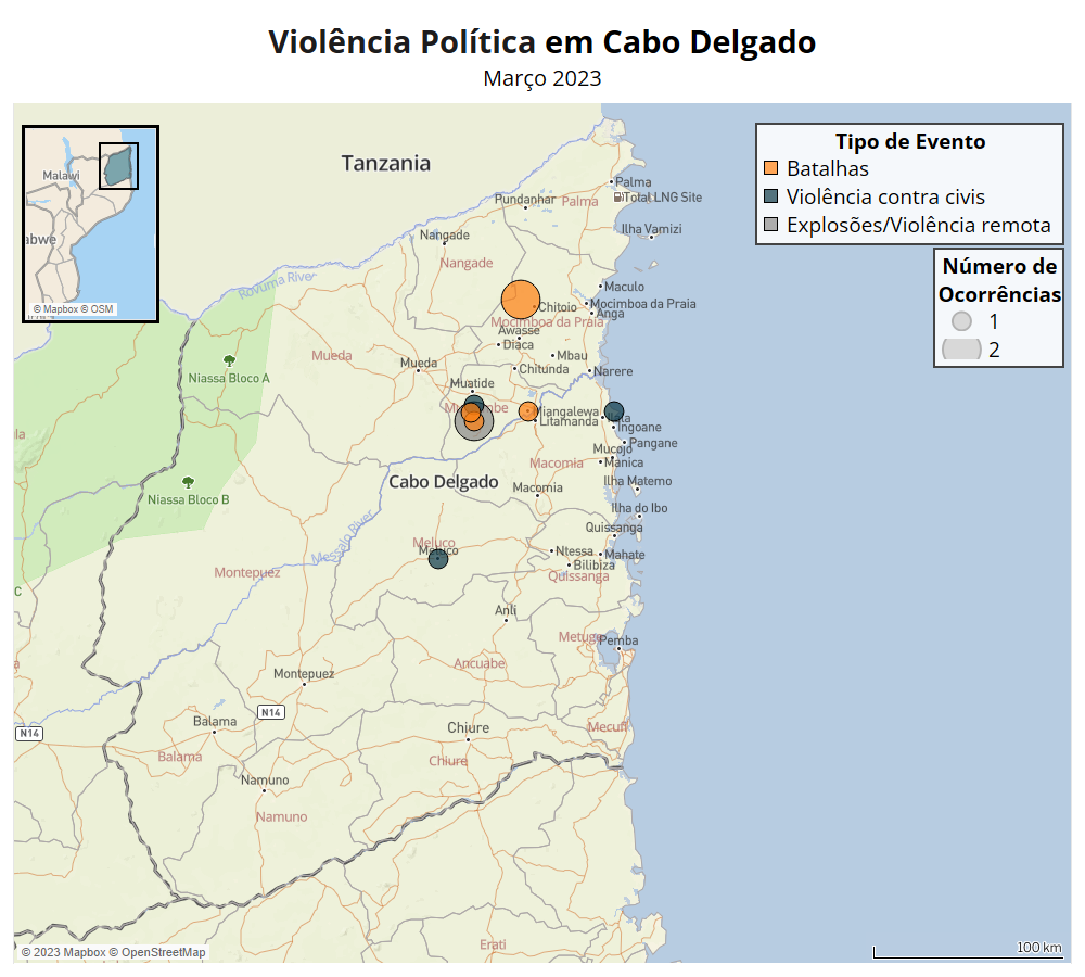 Resumo das atividades de violência política e esforços de paz em Cabo Delgado, Moçambique em março de 2023.