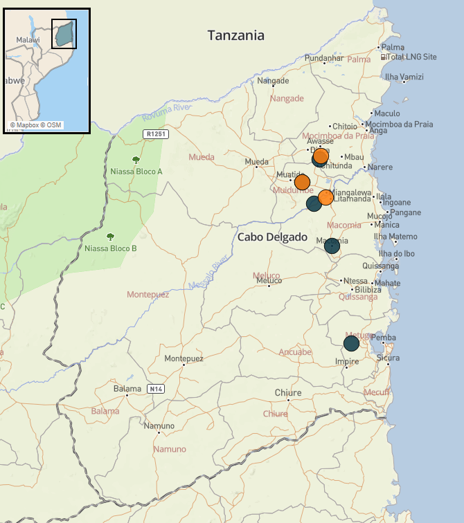 - ACLED regista 8 eventos de violência política em Cabo Delgado em Novembro, resultando em pelo menos 11 vítimas mortais reportadas, com eventos ocorridos nos distritos de Macomia, Mocímboa da Praia, Muidumbe e Metuge