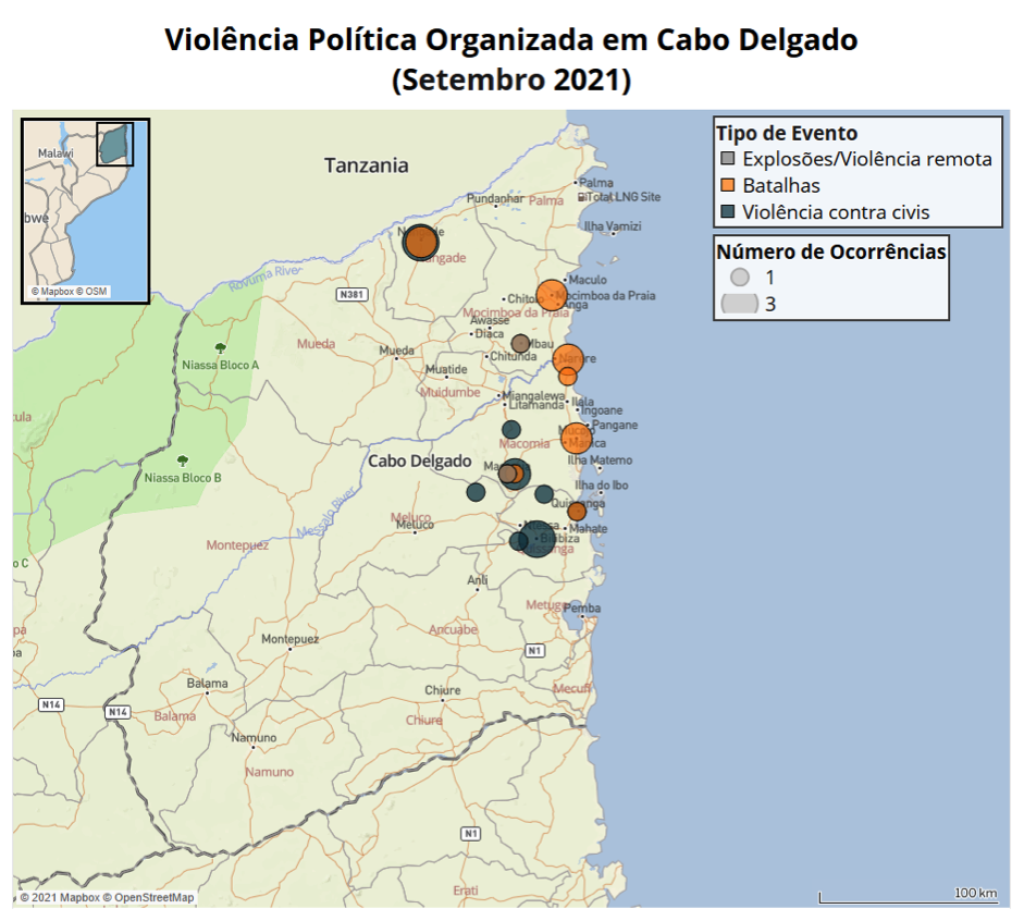 - Os eventos ocorreram nos distritos de Macomia, Meluco, Mocímboa da Praia, Nangade e Quissanga