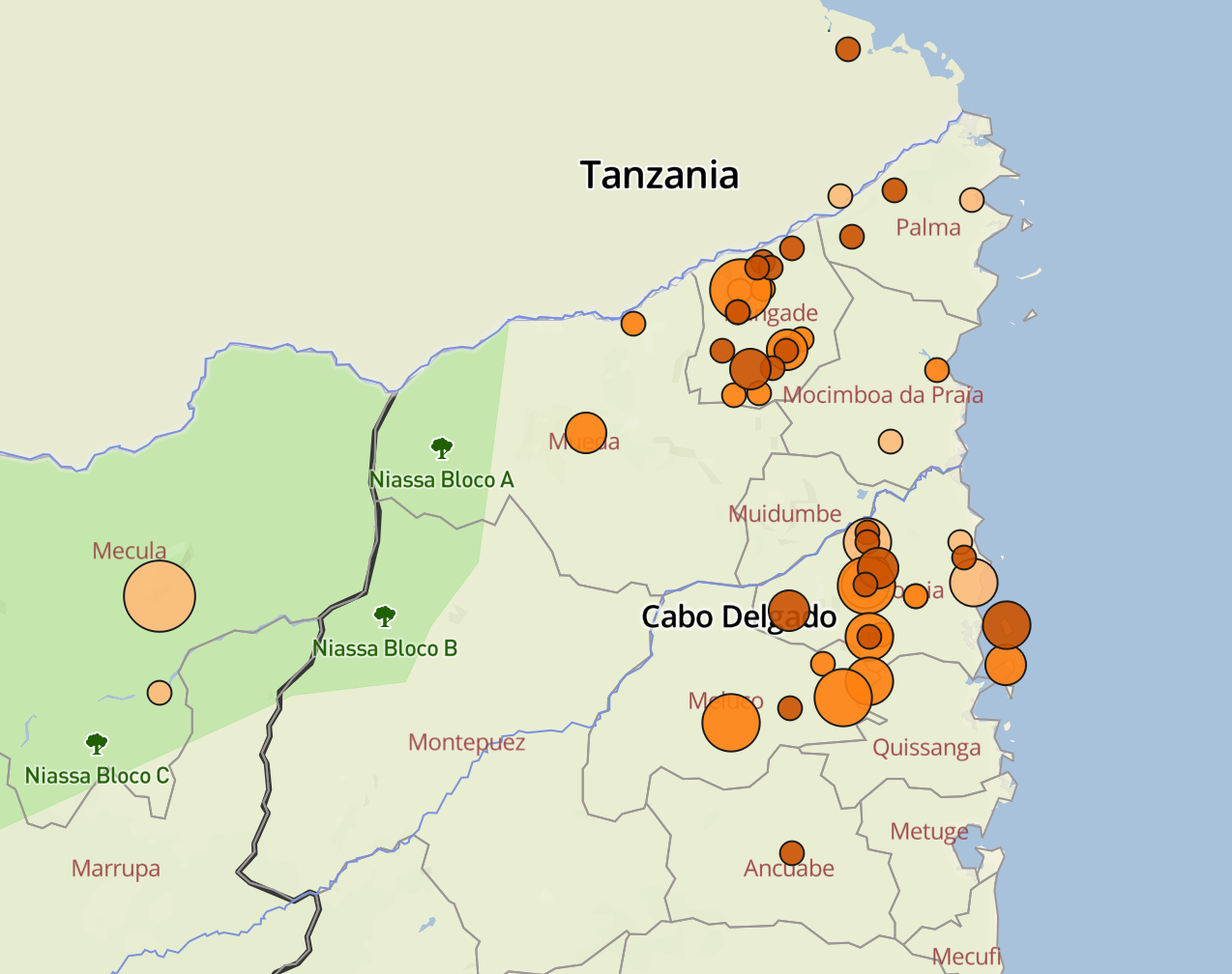 O conflito na província de Cabo Delgado concentrou-se em duas frentes na semana passada: distrito de Macomia, que será analisado a seguir no Foco do Incidente; e distrito de Nangade, onde uma série de ataques aparentemente provocados pela expulsão de insurgentes do distrito de Palma na semana anterior, continuou. Os insurgentes realizaram ataques a aldeias no norte do distrito e sitiaram a vila sede do distrito antes que as ofensivas de contra-insurgência das forças moçambicanas e da Missão da Comunidade para o Desenvolvimento da África Austral (SADC) em Moçambique (SAMIM), que aparentemente resultaram num impasse.