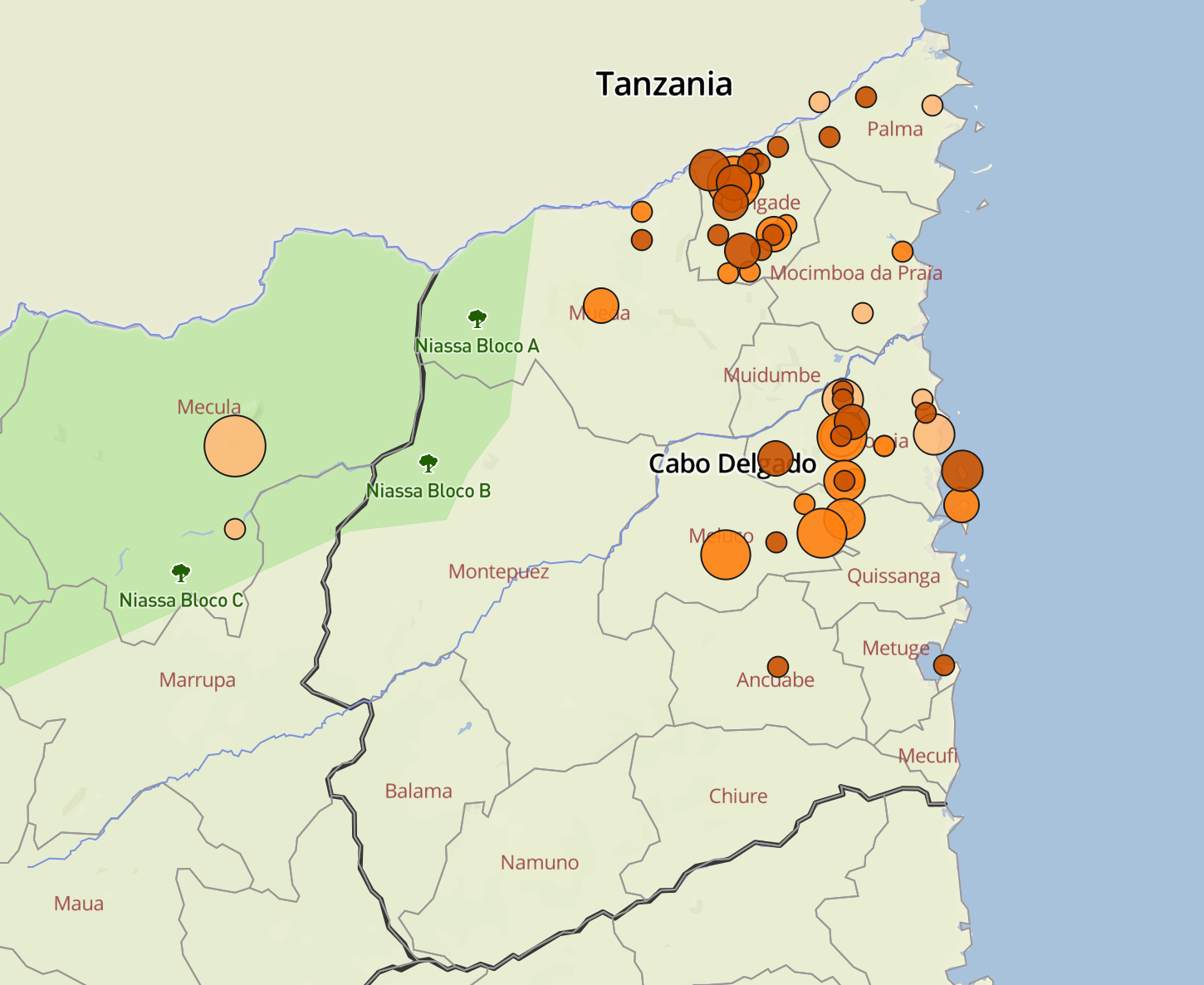 O distrito de Nangade sofreu o peso de violência insurgente na semana passada, com várias aldeias a serem atacadas à medida que militantes consolidam sua presença ao redor de Litingina. A escalada da violência no distrito espalhou temores de que a própria vila de Nangade fosse vulnerável a ataques e fomentou ainda mais o descontentamento entre a população com as forças de segurança da Comunidade de Desenvolvimento da África Austral (SADC).