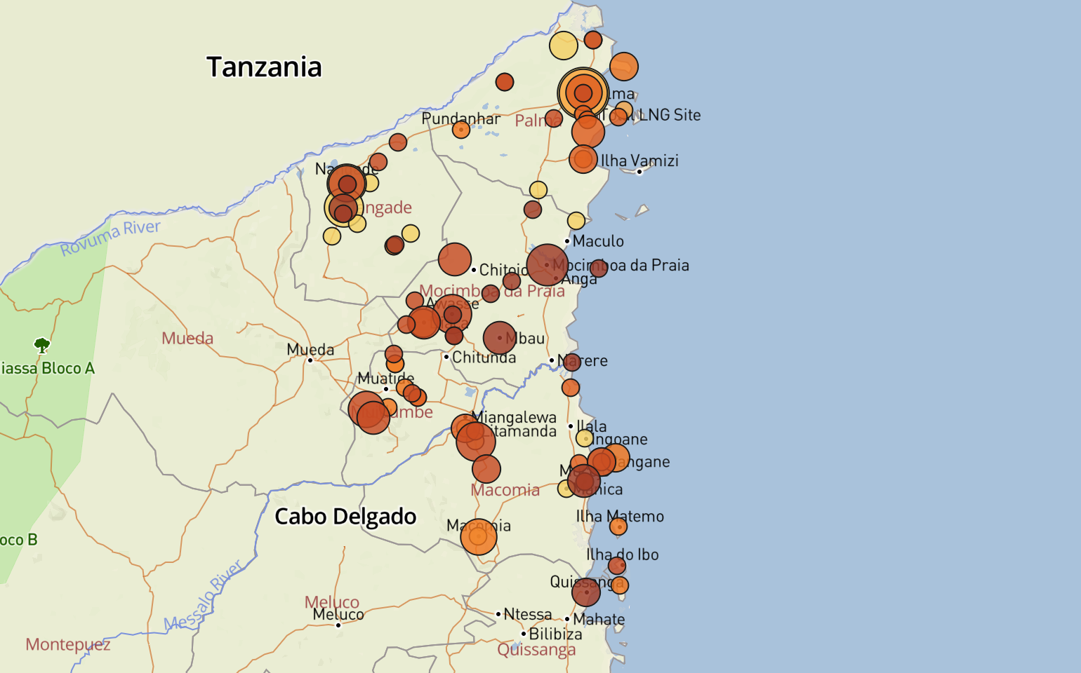 Resumo da violência e esforços humanitários em Cabo Delgado, Moçambique.