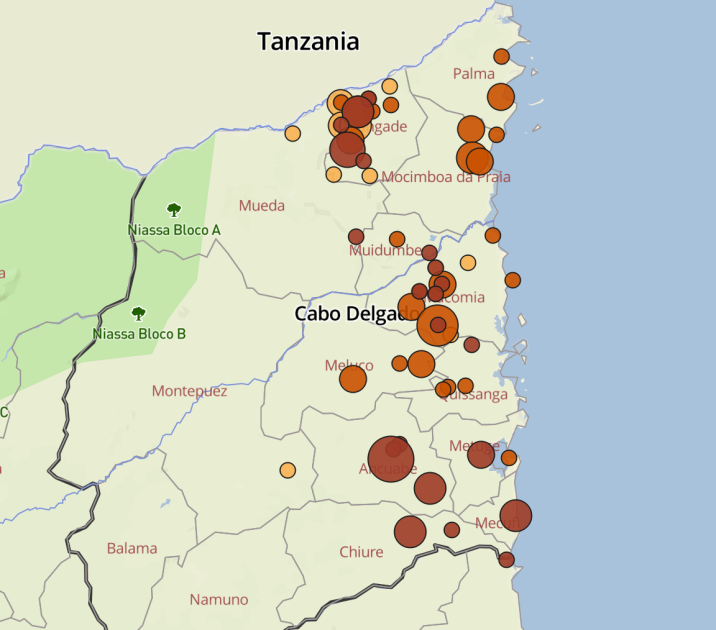 Desde que as forças da SAMIM e do Ruanda entraram no conflito há um ano, ataques e confrontos têm sido relatados todos os meses e em alguns locais – ou seja, aldeias em Quinto Congresso, Nkoe, Nova Zambézia – repetidamente. O litoral também tem sido particularmente vulnerável a ataques e invasões de insurgentes, e também tem sido o local de alguns grandes confrontos com as forças de segurança. No final de Setembro de 2020, o posto administrativo de Mucojo e arredores foram brevemente ocupadas. Embora as forças de segurança tenham conseguido manter alguma presença nas principais vilas e aldeias, elas não mantiveram o controle nas áreas vizinhas. Para reforçar as forças moçambicanas, a polícia começou a armar milícias em todo o distrito por volta de Agosto de 2020. Elas continuam sendo um importante recurso local e continuam presentes em muitas áreas afetadas.