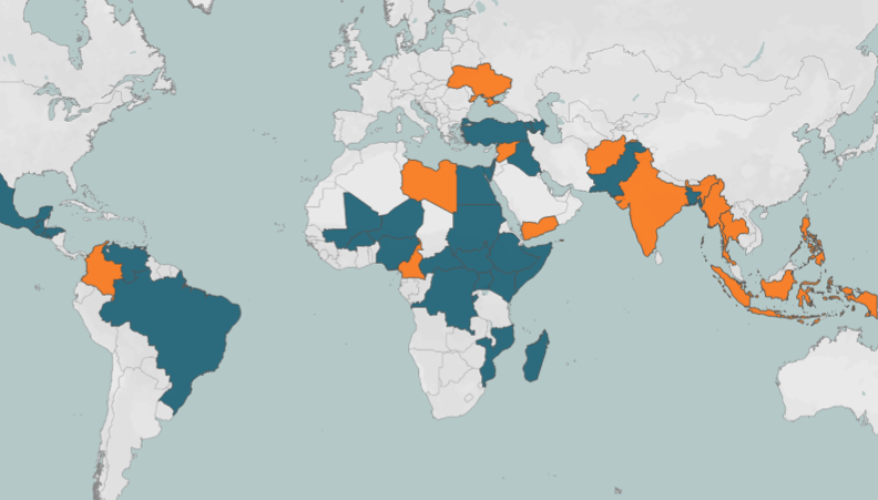Unfortunately, the call for a global ceasefire has largely fallen on deaf ears. Out of 43 countries where there have been at least 50 reported events of organized violence this year (see figure below),1 only 10 saw actors “welcome” the call, declare a unilateral ceasefire, or establish a mutual ceasefire agreement (these 10 are included among the countries highlighted orange in the map below, alongside Libya and Thailand, where actors took steps toward ceasefires unrelated to the UN appeal).2 Of the other 31 countries, not only did conflict actors fail to take steps to meet the call, many actually increased rates of organized violence, such as in Mexico, Iraq, Mozambique, and Brazil. While there have been some positive responses, most are simply statements of support with no commitment to action. Those groups that have taken action have done so unilaterally, and with varying levels of commitment. For the rare actors that have managed to establish bilateral ceasefires, both parties have subsequently struggled to extend the agreements past a short window. In general, the call for a global ceasefire has not had the desired result. In conflicts where ACLED identifies a reduction in violence, there is often an alternative explanation for the decrease.