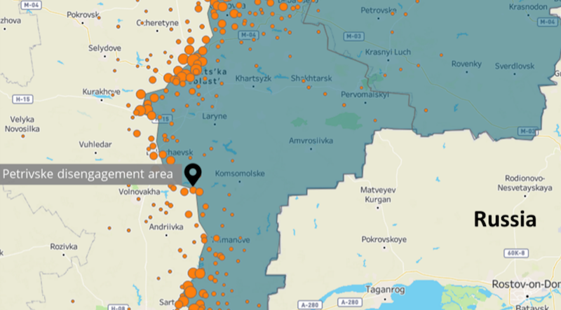 In contrast, fighting in the Petrivske area in Donetsk region increased leading up to disengagement, and escalated further after a brief period of calm (see figure below).