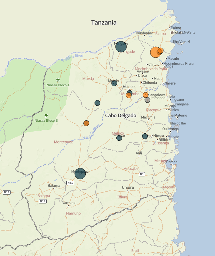 - Other events took place in Montepuez, Muidumbe, Mocímboa da Praia, Nangade, Ancuabe, and Palma