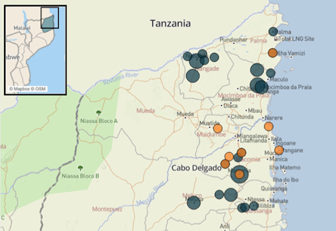 - Other events took place in Nangade, Mocímboa da Praia, Meluco, Palma, Quissanga, Pemba, and Muidumbe districts in Cabo Delgado