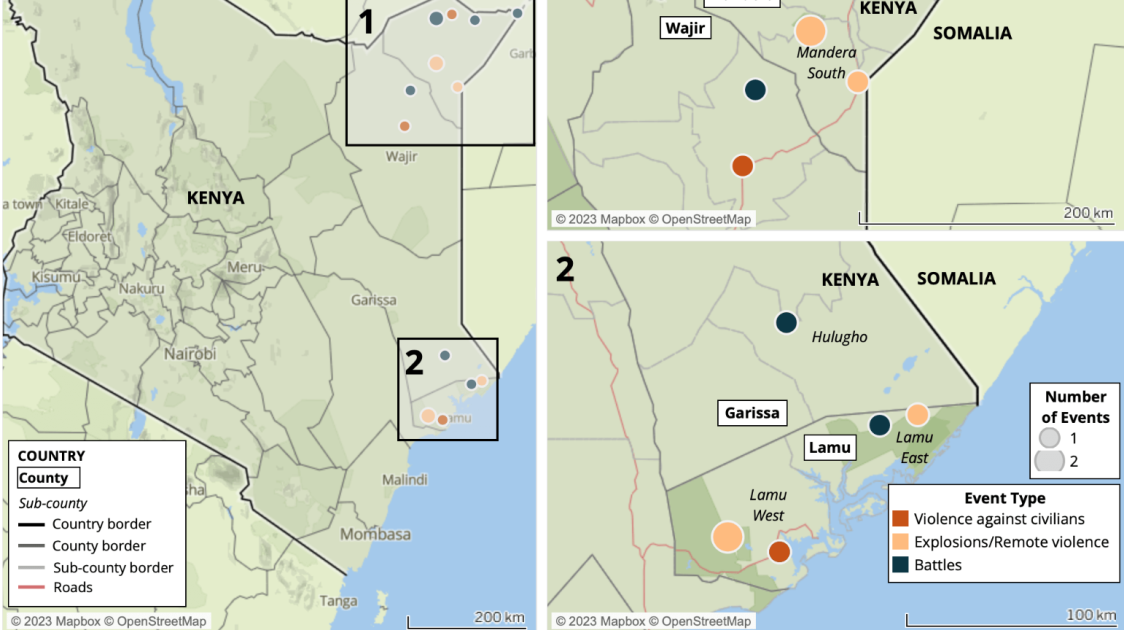 - Garissa county had the highest number of fatalities, with at least 14 during the reporting period. Mandera and Lamu counties followed, with at least eight and seven, respectively. Al-Shabaab activity contributed to nearly half all reported fatalities.